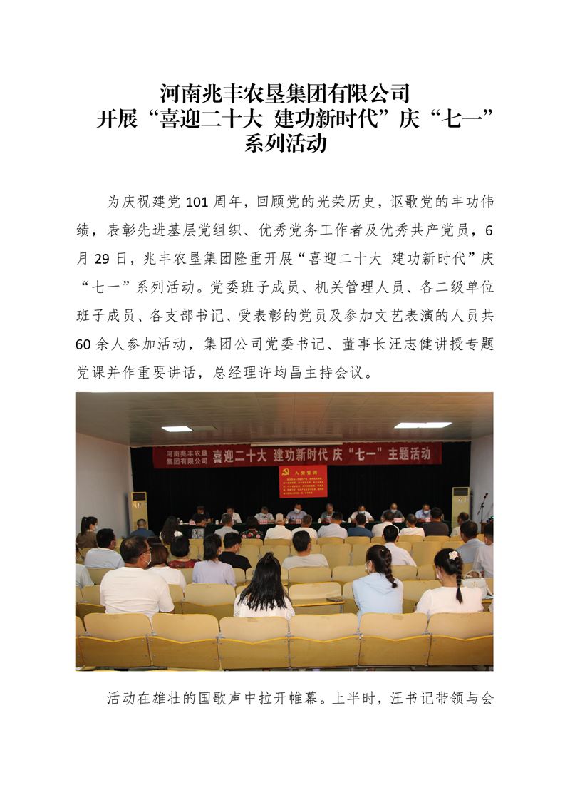 · 河南兆豐農(nóng)墾集團(tuán)有限公司 開(kāi)展“喜迎二十大 建功新時(shí)代”慶“七一”系列活動(dòng)