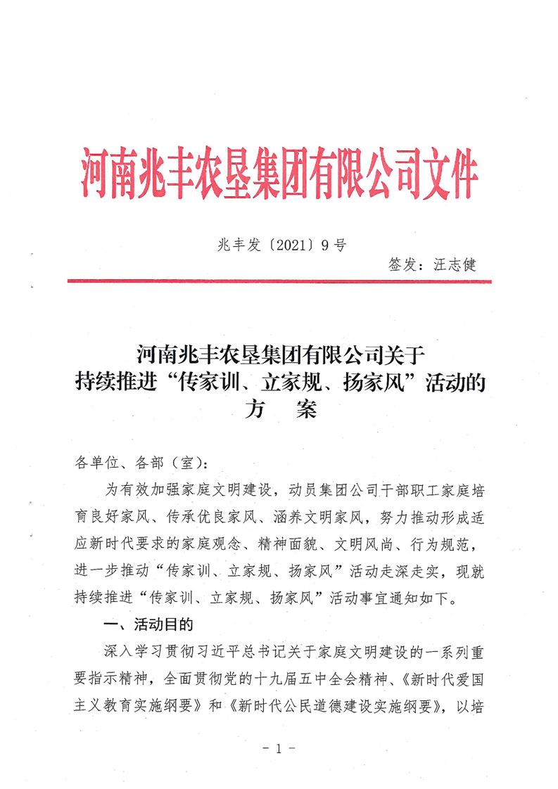 · 河南兆豐農(nóng)墾集團有限公司 持續(xù)推進“傳家訓、立家規(guī)、揚家風”活動的方案