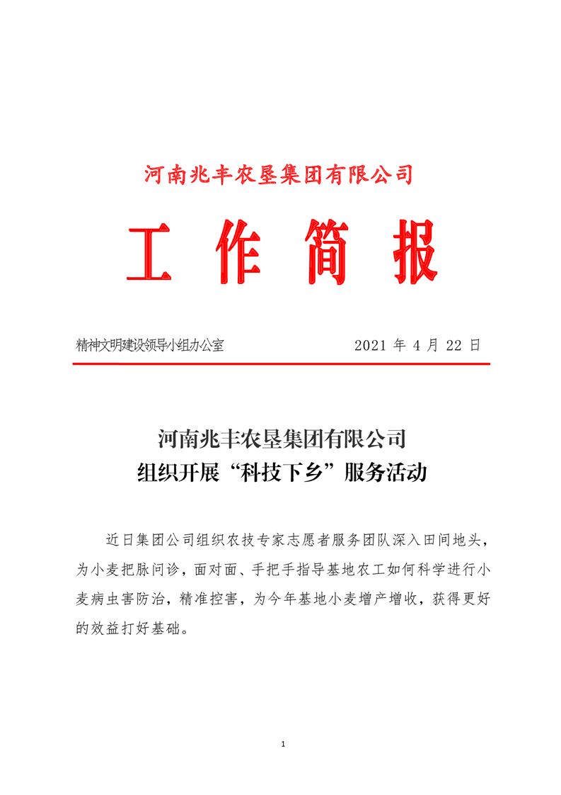 · 河南兆豐農(nóng)墾集團有限公司 組織開展“科技下鄉(xiāng)”服務活動