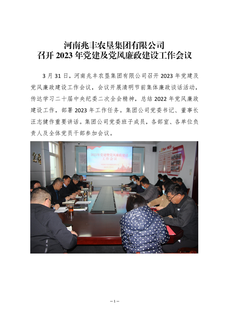 · 河南兆豐農(nóng)墾集團有限公司組織召開黨建及黨風廉政建設(shè)工作會議