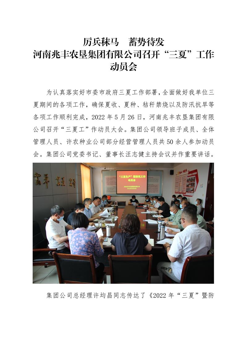 · 厲兵秣馬 蓄勢待發(fā) 河南兆豐農(nóng)墾集團(tuán)有限公司召開“三夏”工作動員會