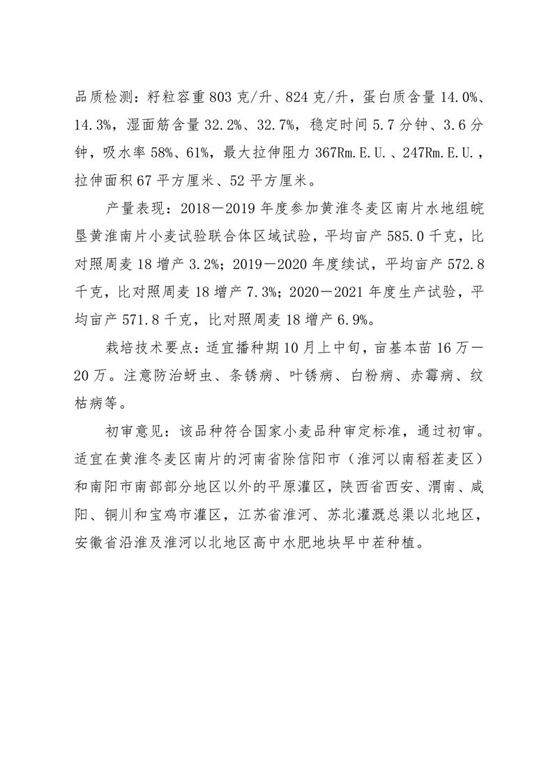 · 祝賀河南兆豐農(nóng)墾集團(tuán)有限公司 小麥品種兆豐3188、兆豐6號通過第四屆國家農(nóng)作物品種審定委員會第五次小麥品種審定會議初審