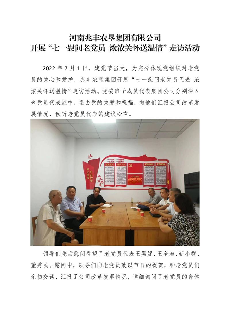 · 河南兆豐農(nóng)墾集團有限公司 開展“七一慰問老黨員 濃濃關(guān)懷送溫情”走訪活動