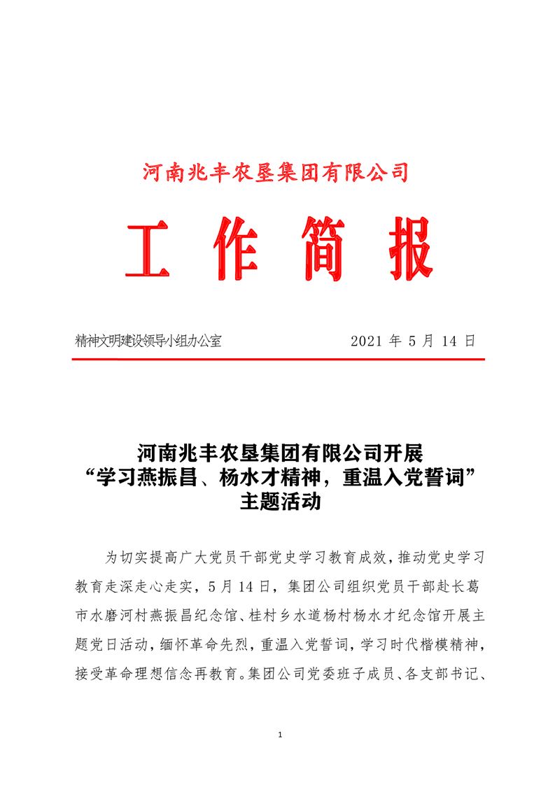 · 河南兆豐農(nóng)墾集團(tuán)有限公司 開展 “學(xué)習(xí)燕振昌、楊水才精神,重溫入黨誓詞”主題活動