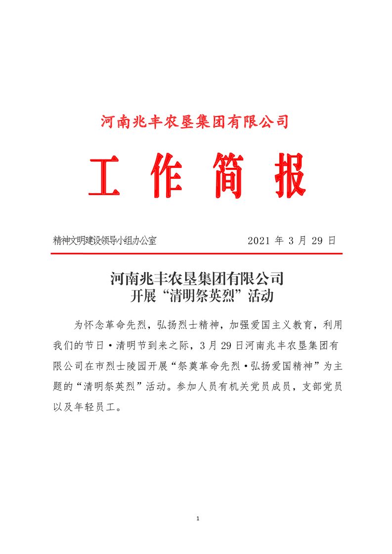 · 河南兆豐農(nóng)墾集團(tuán)有限公司 開展“清明祭英烈”活動(dòng)