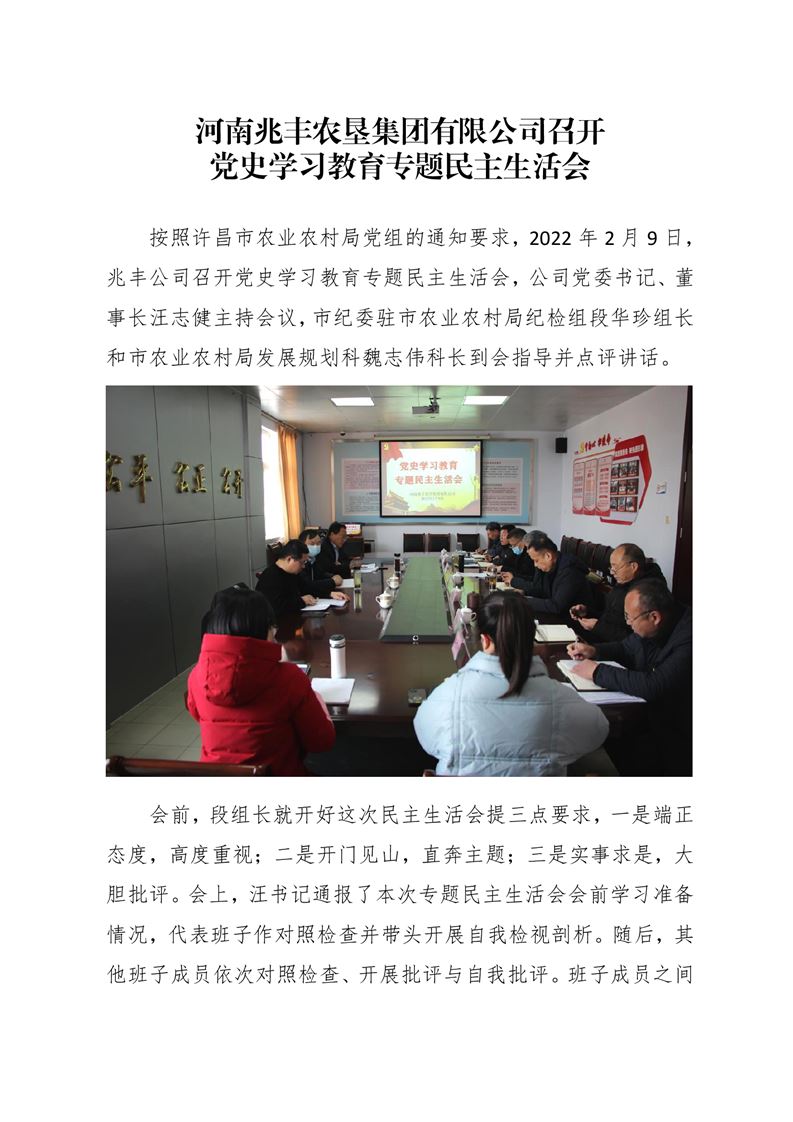 · 河南兆豐農(nóng)墾集團(tuán)有限公司召開 黨史學(xué)習(xí)教育專題民主生活會(huì)