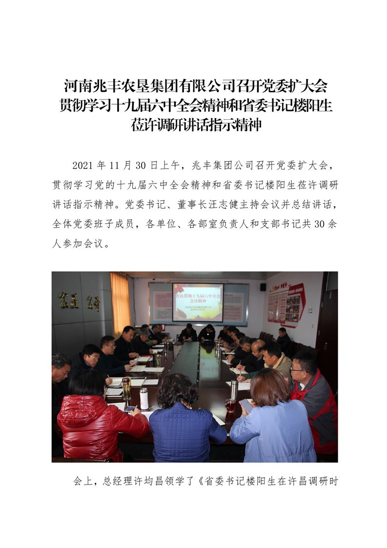 · 河南兆豐農(nóng)墾集團(tuán)有限公司 召開(kāi)黨委擴(kuò)大會(huì) 貫徹學(xué)習(xí)十九屆六中全會(huì)精神和省委書記樓陽(yáng)生 蒞許調(diào)研講話指示精神