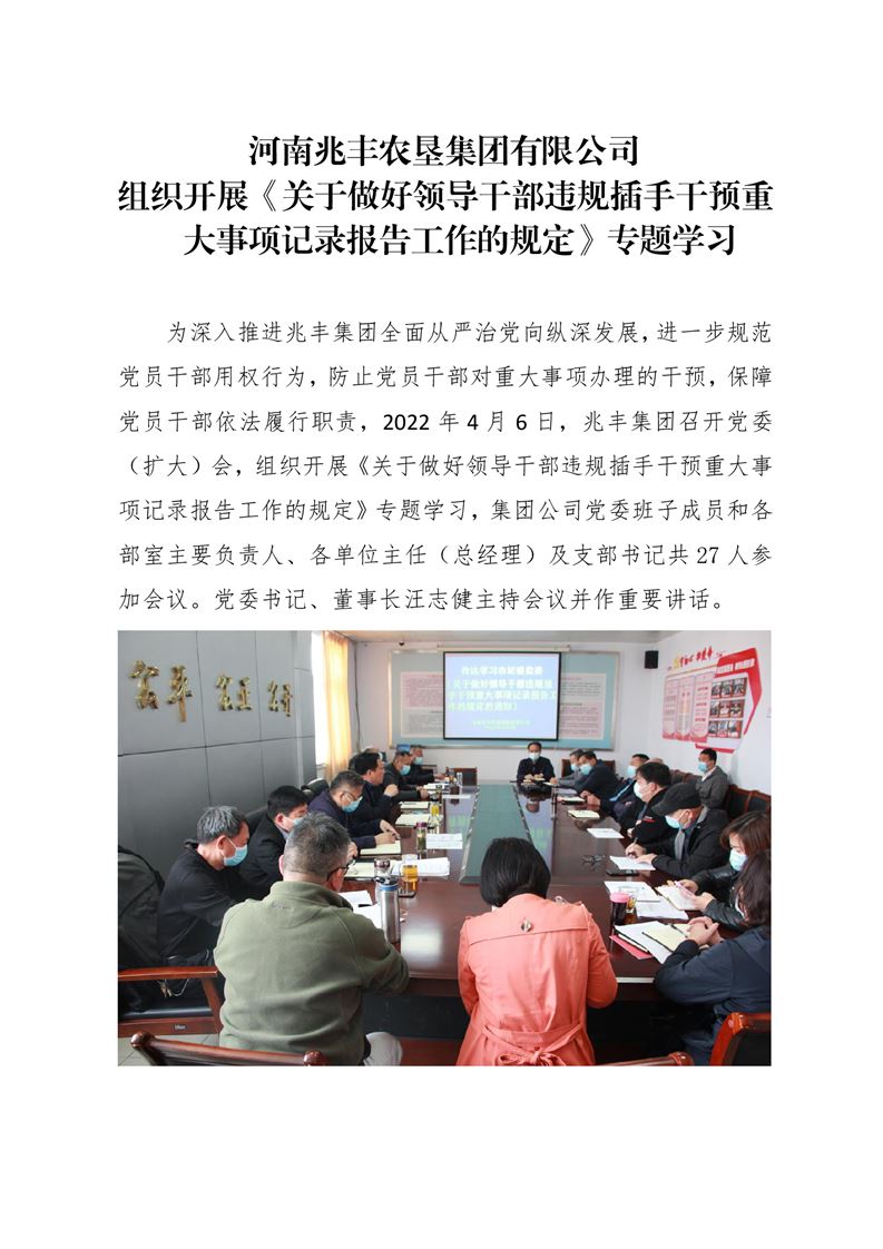 · 河南兆豐農(nóng)墾集團有限公司 組織開展《關于做好領導干部違規(guī)插手干預重大事項記錄報告工作的規(guī)定》專題學習