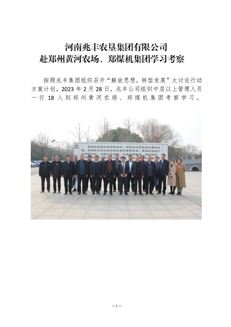 · 河南兆豐農(nóng)墾集團有限公司組織人員赴鄭煤機集團、黃河農(nóng)場考察學習