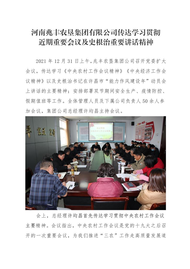 · 河南兆豐農(nóng)墾集團有限公司 傳達學(xué)習(xí)貫徹 近期重要會議及史根治重要講話精神