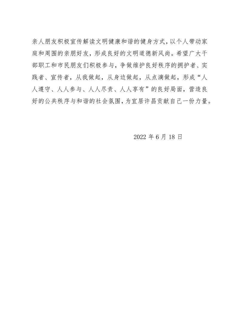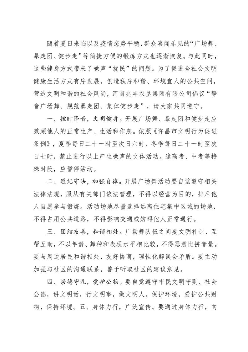 · “靜音廣場舞,規(guī)范暴走團(tuán)、健步走”倡議書