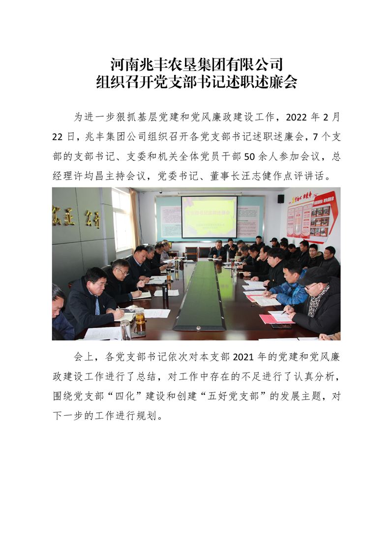 · 河南兆豐農(nóng)墾集團(tuán)有限公司 組織召開黨支部書記述職述廉會(huì)
