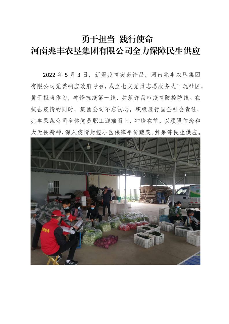 · 勇于擔(dān)當(dāng) 踐行使命 河南兆豐農(nóng)墾集團(tuán)有限公司全力保障民生供應(yīng)