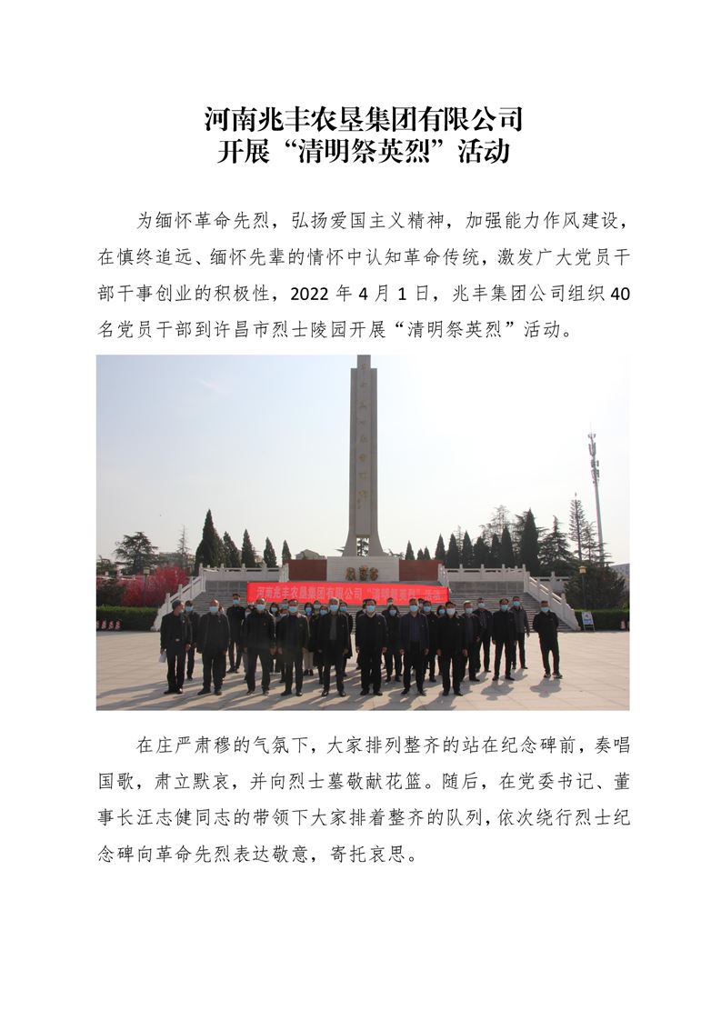 · 河南兆豐農(nóng)墾集團有限公司 開展“清明祭英烈”活動