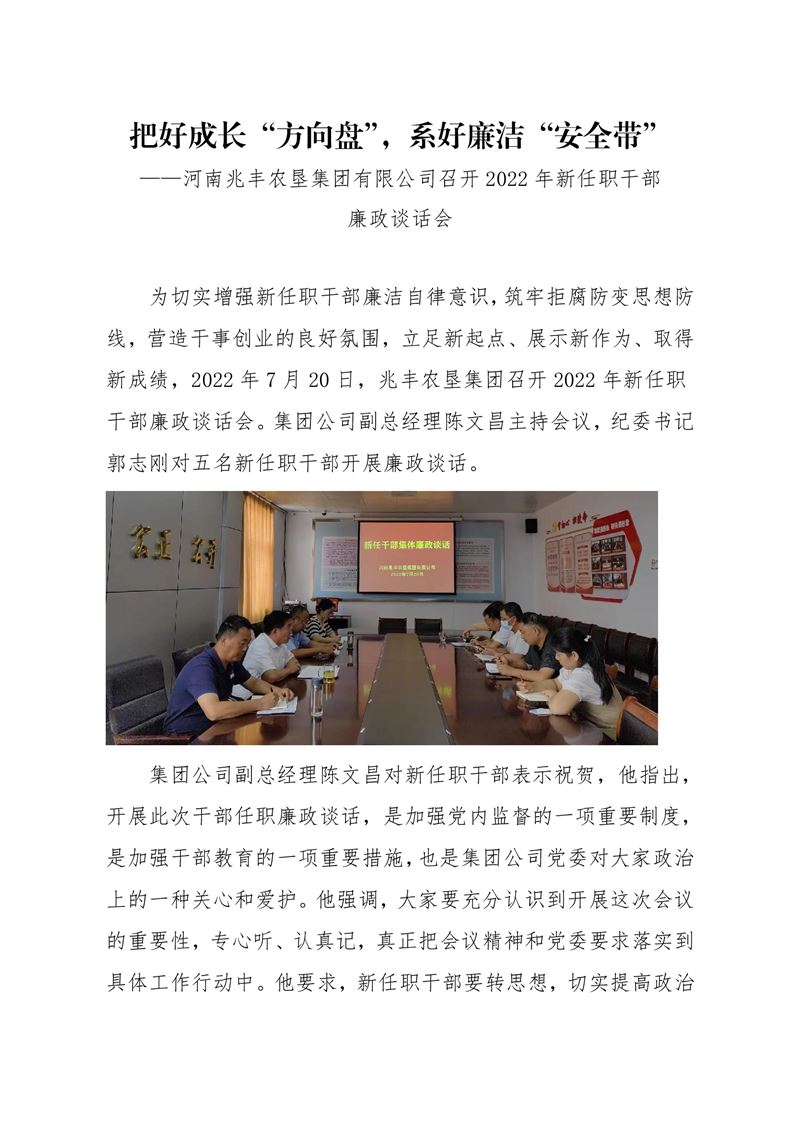 · 把好成長“方向盤”,系好廉潔“安全帶” ——河南兆豐農(nóng)墾集團有限公司召開2022年新任職干部 廉政談話會