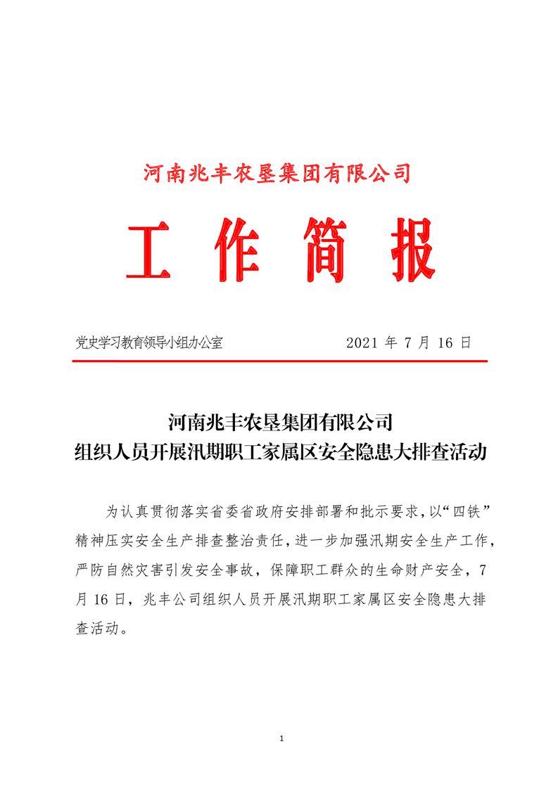 · 【我為職工辦實(shí)事】河南兆豐農(nóng)墾集團(tuán)有限公司 組織人員開展汛期職工家屬區(qū)安全隱患大排查活動(dòng)