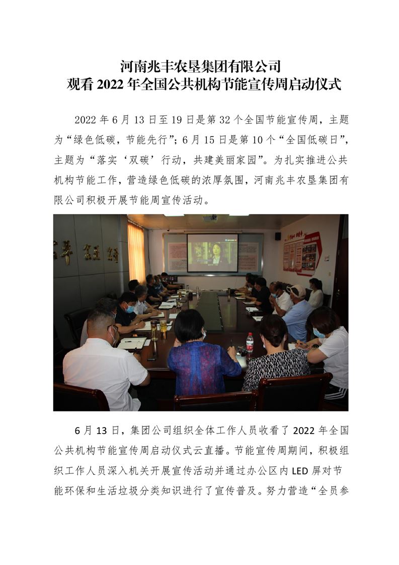· 河南兆豐農(nóng)墾集團(tuán)有限公司 觀(guān)看2022年全國(guó)公共機(jī)構(gòu)節(jié)能宣傳周啟動(dòng)儀式