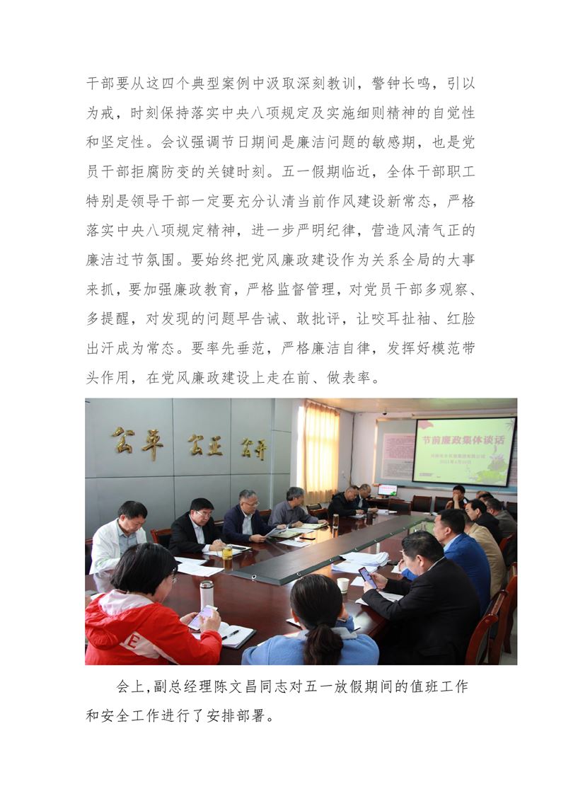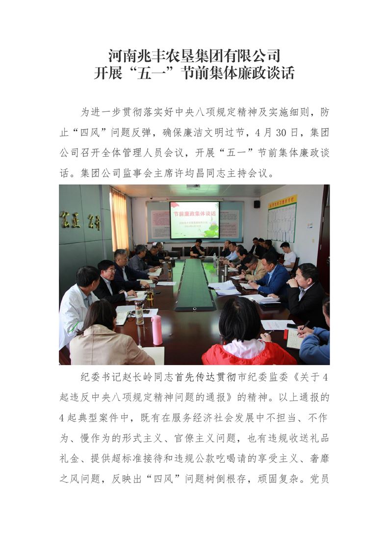 · 河南兆豐農(nóng)墾集團(tuán)有限公司 開展“五一”節(jié)前集體廉政談話