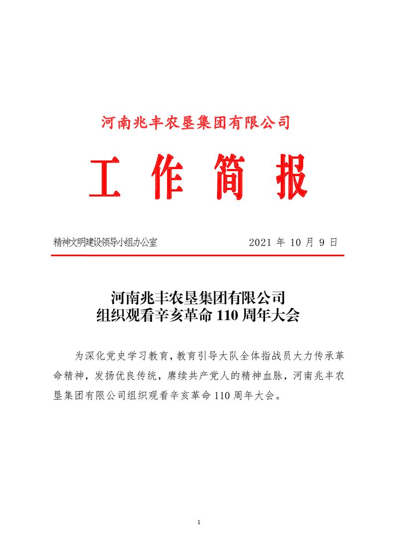· 河南兆豐農(nóng)墾集團(tuán)有限公司 組織觀看辛亥革命110周年大會(huì)