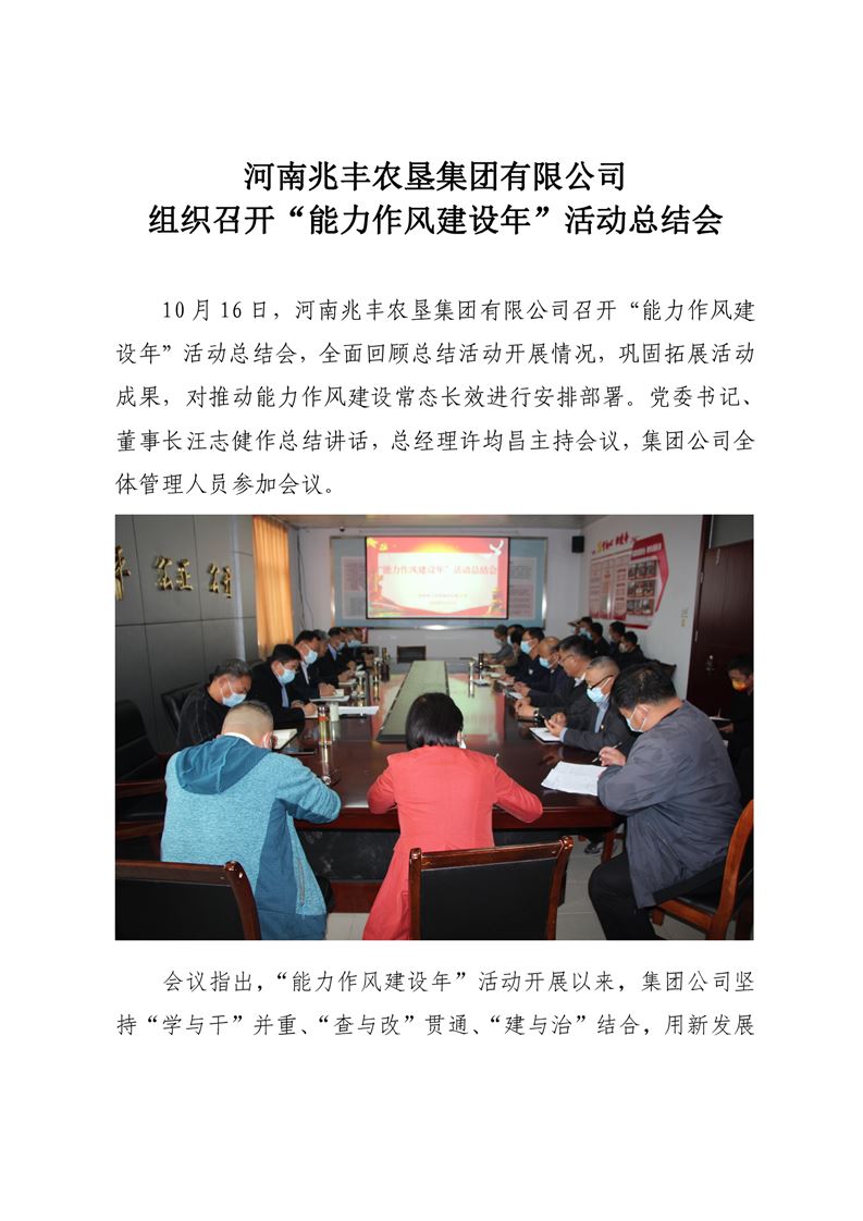 · 河南兆豐農(nóng)墾集團(tuán)有限公司 組織召開“能力作風(fēng)建設(shè)年”活動(dòng)總結(jié)會(huì)