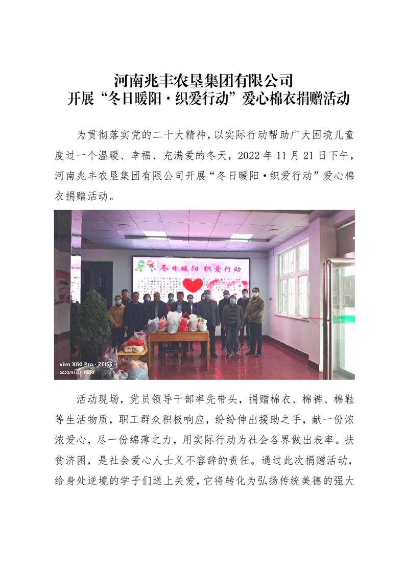 · 河南兆豐農(nóng)墾集團(tuán)有限公司 開(kāi)展“冬日暖陽(yáng)·織愛(ài)行動(dòng)”愛(ài)心棉衣捐贈(zèng)活動(dòng)