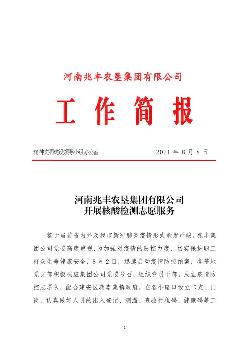 · 河南兆豐農(nóng)墾集團(tuán)有限公司 開(kāi)展核酸檢測(cè)志愿服務(wù)