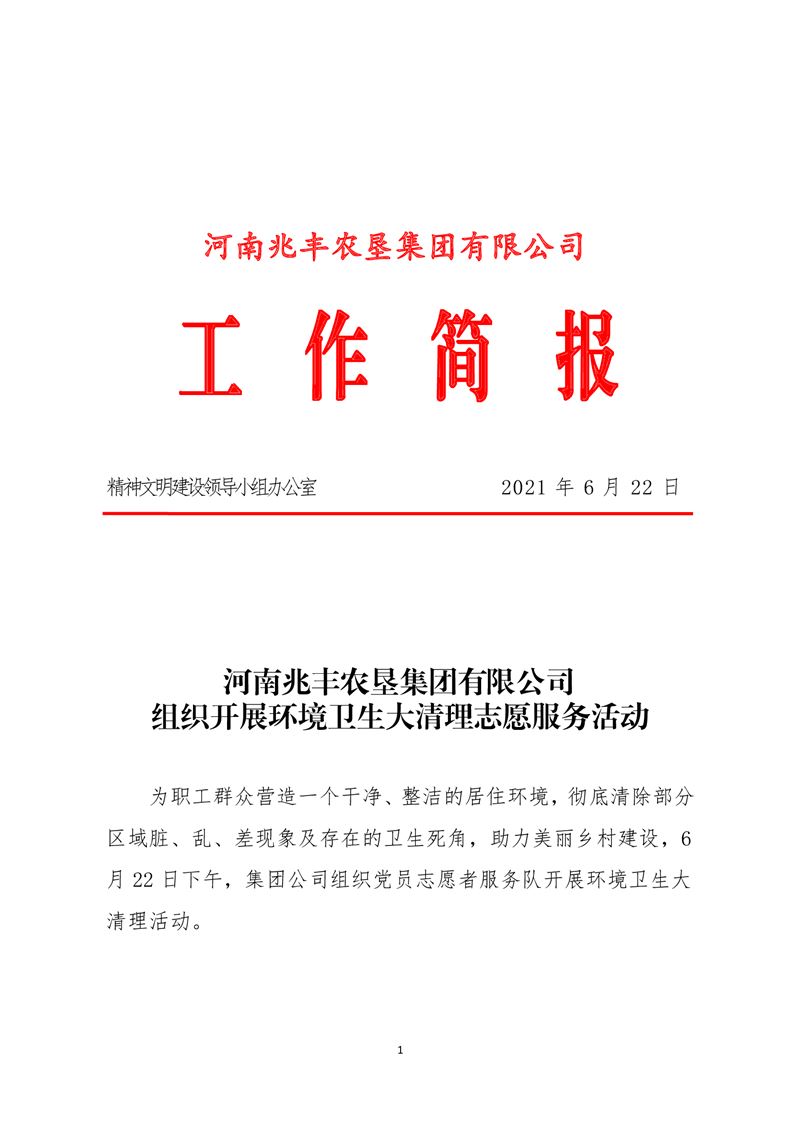 · 河南兆豐農(nóng)墾集團有限公司 組織開展環(huán)境衛(wèi)生大清理志愿服務(wù)活動