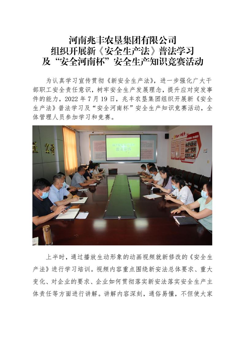 · 河南兆豐農(nóng)墾集團(tuán)有限公司 組織開展新《安全生產(chǎn)法》普法學(xué)習(xí) 及“安全河南杯”安全生產(chǎn)知識競賽活動