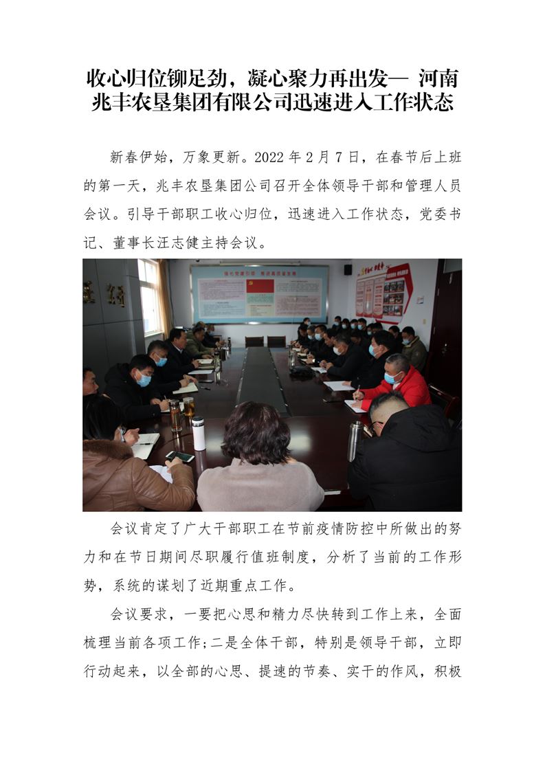 · 收心歸位鉚足勁,凝心聚力再出發(fā)— 河南兆豐農(nóng)墾集團(tuán)有限公司迅速進(jìn)入工作狀態(tài)