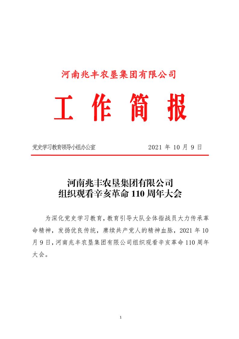 · 河南兆豐農(nóng)墾集團(tuán)有限公司 組織觀看辛亥革命110周年大會(huì)
