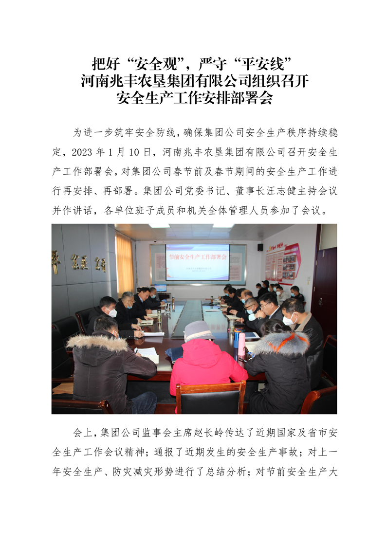 · 把好“安全觀”,嚴(yán)守“平安線” 河南兆豐農(nóng)墾集團(tuán)有限公司組織召開 安全生產(chǎn)工作安排部署會