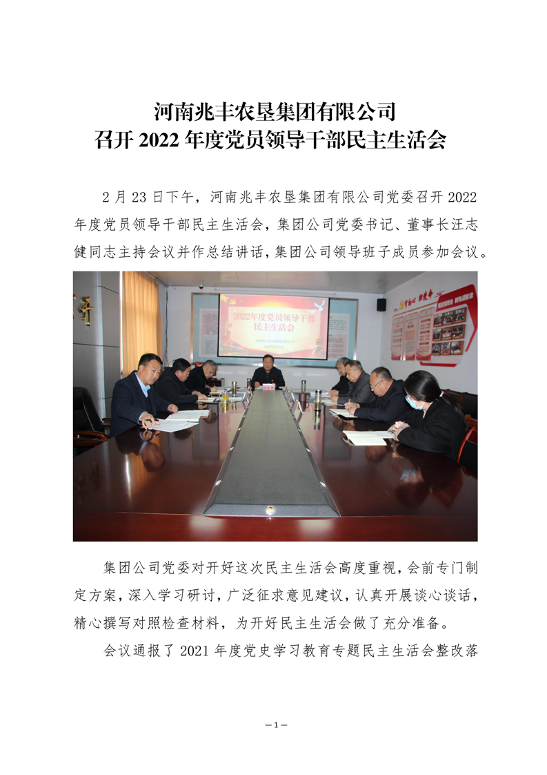 · 河南兆豐農(nóng)墾集團(tuán)有限公司 召開2022年度黨員領(lǐng)導(dǎo)干部民主生活會(huì)