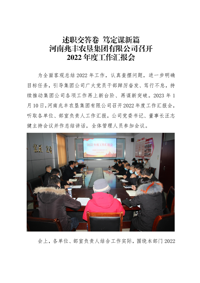 · 述職交答卷 篤定謀新篇 河南兆豐農(nóng)墾集團(tuán)有限公司召開 2022年度工作匯報(bào)會