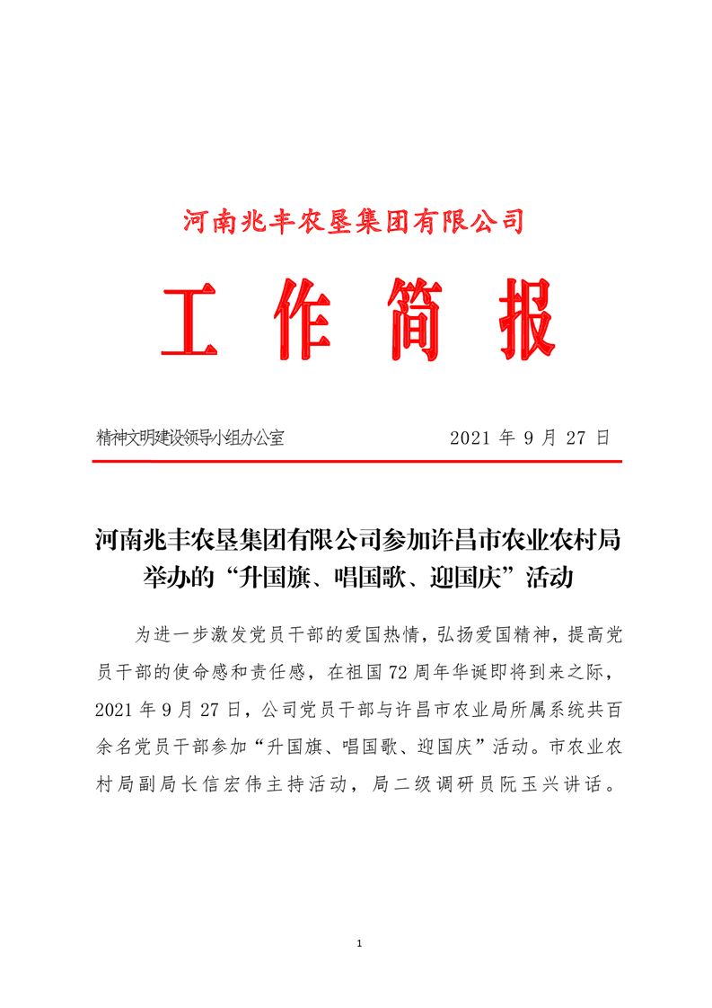 · 河南兆豐農(nóng)墾集團有限公司 參加許昌市農(nóng)業(yè)農(nóng)村局 舉辦的“升國旗、唱國歌、迎國慶”活動