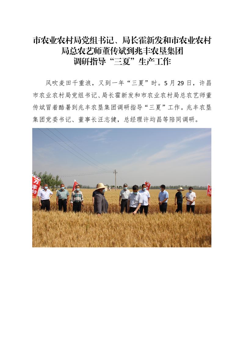 · 農(nóng)業(yè)農(nóng)村局黨組書記、局長(zhǎng)霍新發(fā)和市農(nóng)業(yè)農(nóng)村局總農(nóng)藝師董傳斌到兆豐農(nóng)墾集團(tuán) 調(diào)研指導(dǎo)“三夏”生產(chǎn)工作