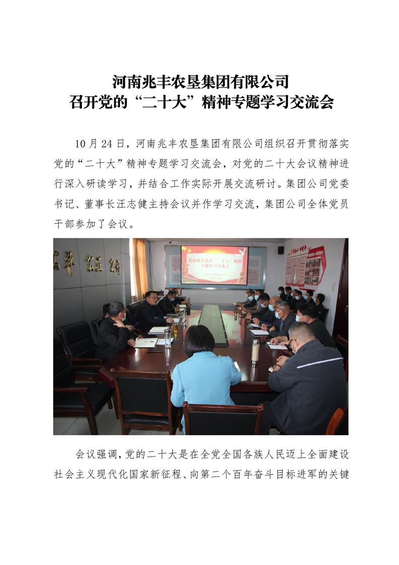 · 河南兆豐農(nóng)墾集團(tuán)有限公司 召開黨的“二十大”精神專題學(xué)習(xí)交流會(huì)