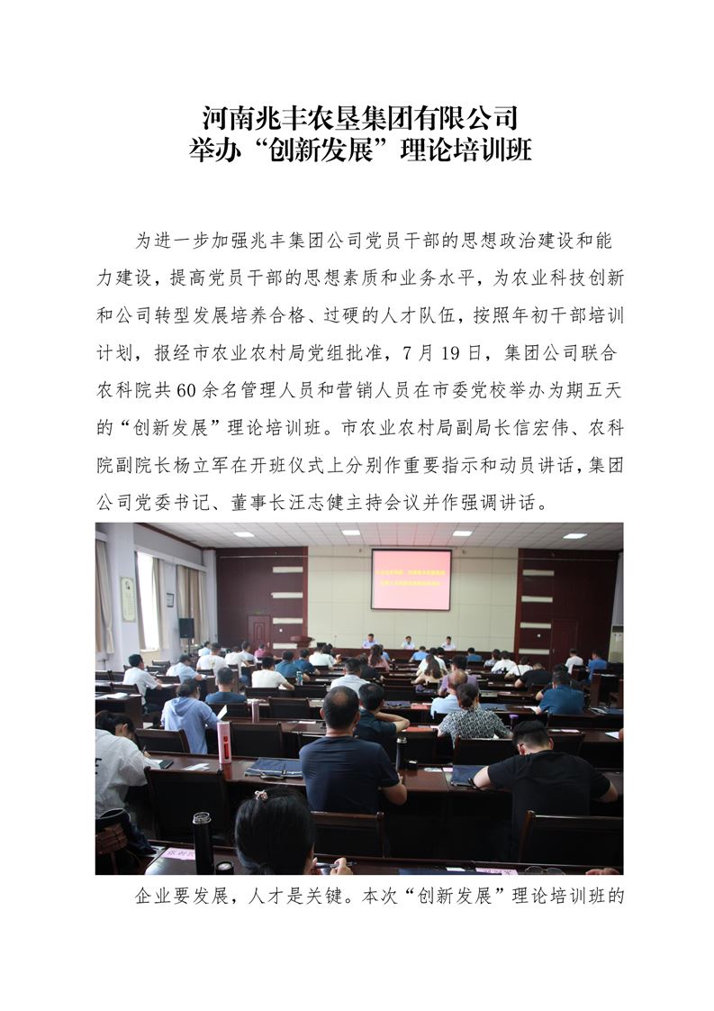 · 河南兆豐農(nóng)墾集團(tuán)有限公司 舉辦“創(chuàng)新發(fā)展”理論培訓(xùn)班