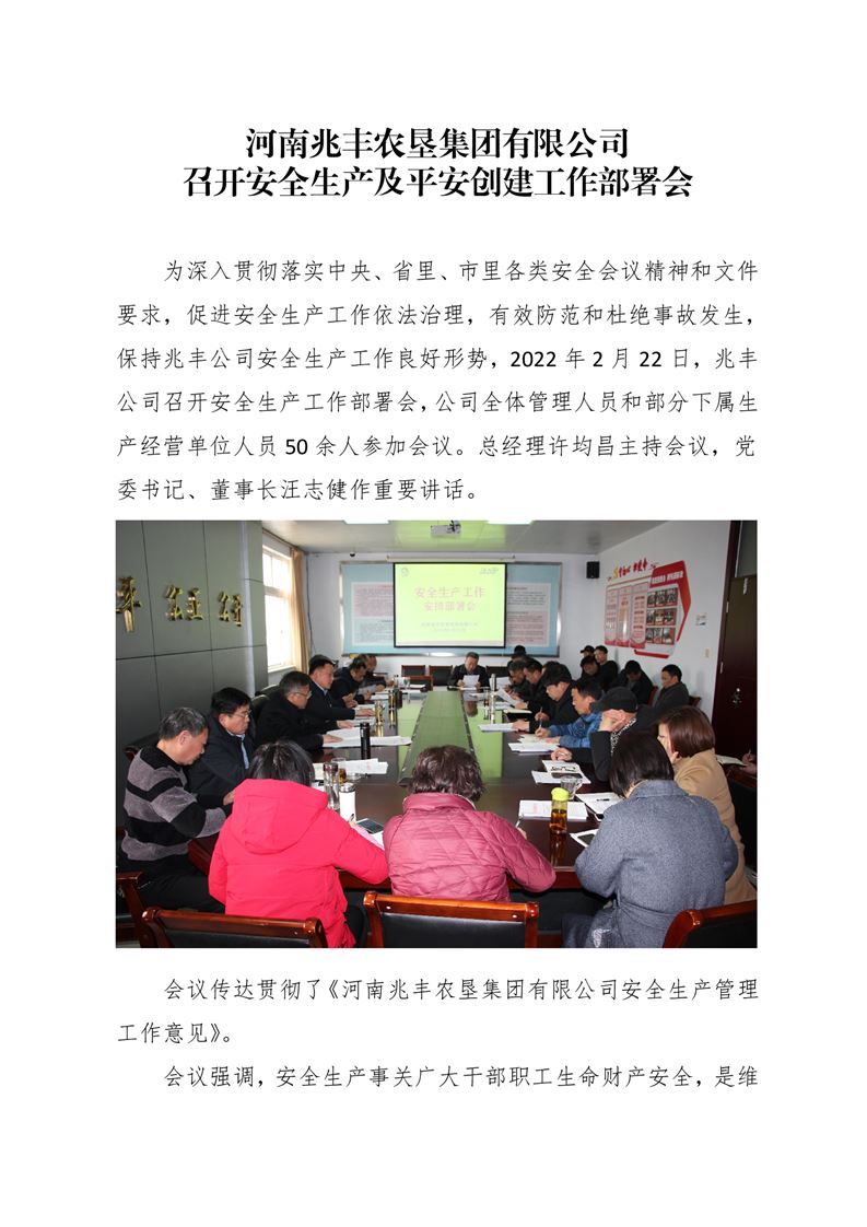 · 河南兆豐農(nóng)墾集團(tuán)有限公司 召開安全生產(chǎn)及平安創(chuàng)建工作部署會