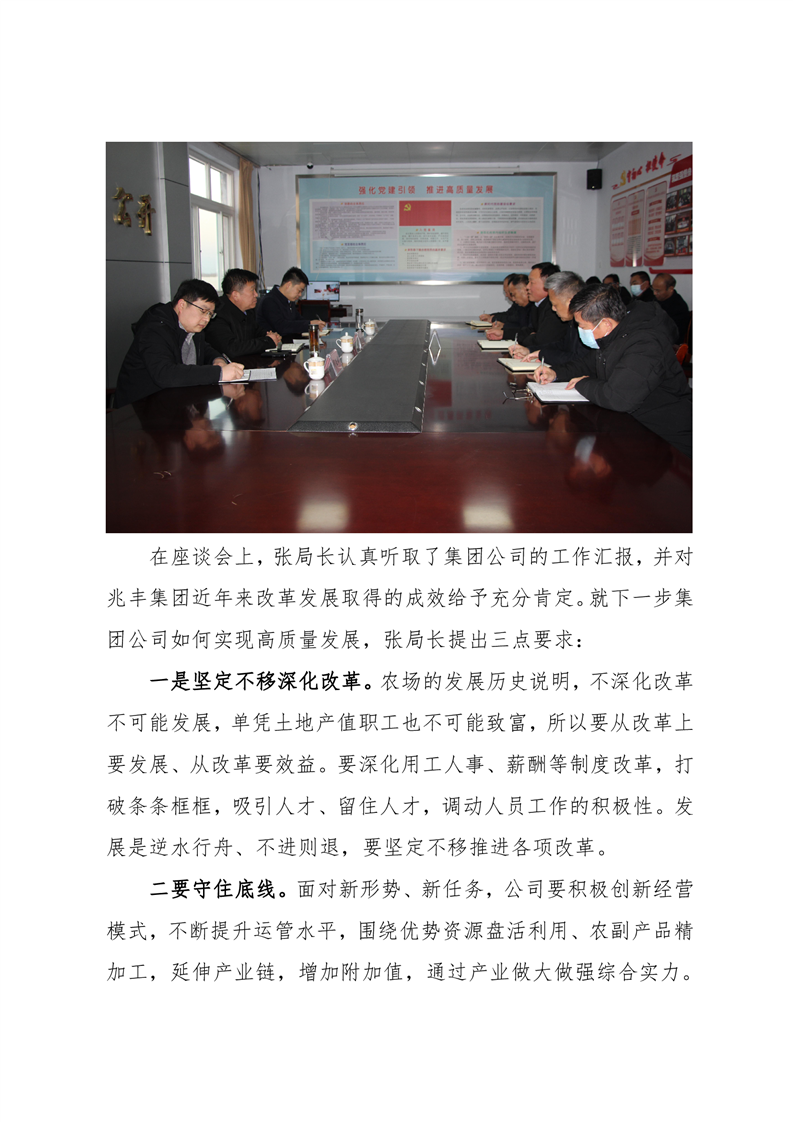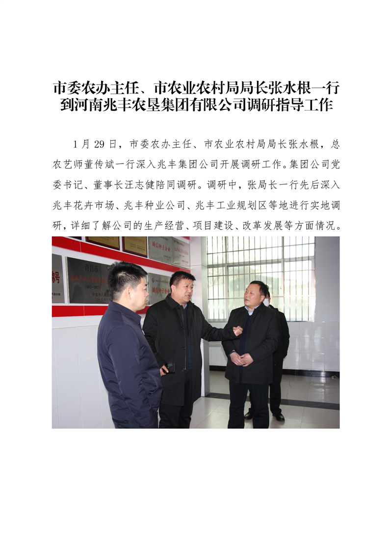· 市委農(nóng)辦主任、市農(nóng)業(yè)農(nóng)村局局長(zhǎng)張水根一行到河南兆豐農(nóng)墾集團(tuán)有限公司調(diào)研指導(dǎo)工作