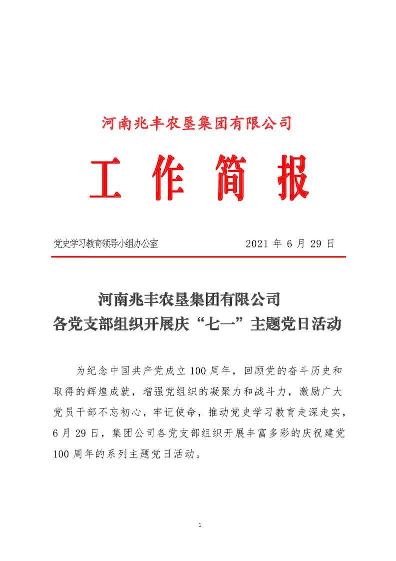 · 河南兆豐農(nóng)墾集團有限公司 各黨支部組織開展慶“七一”主題黨日活動