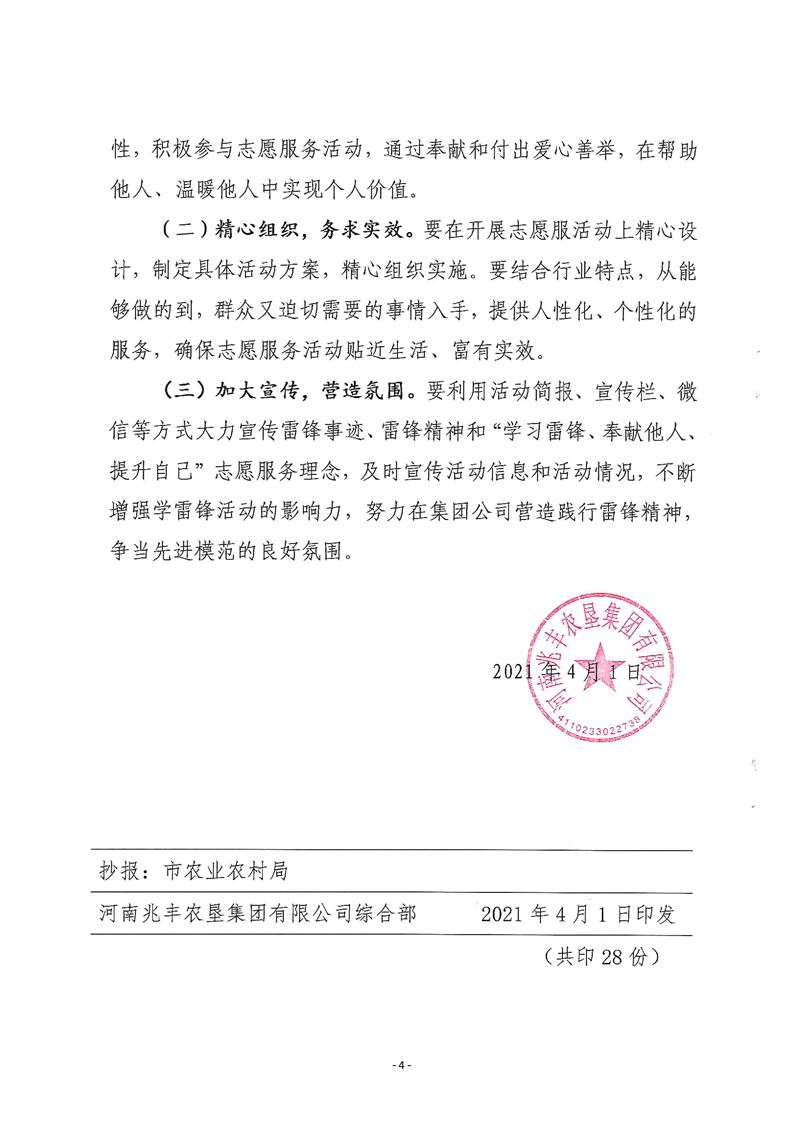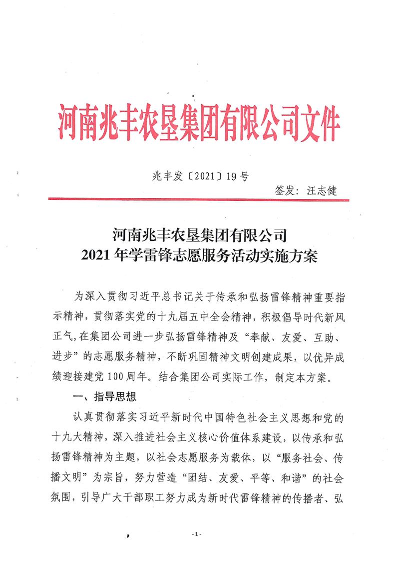 · 河南兆豐農墾集團有限公司 2021年學雷鋒志愿服務活動實施方案