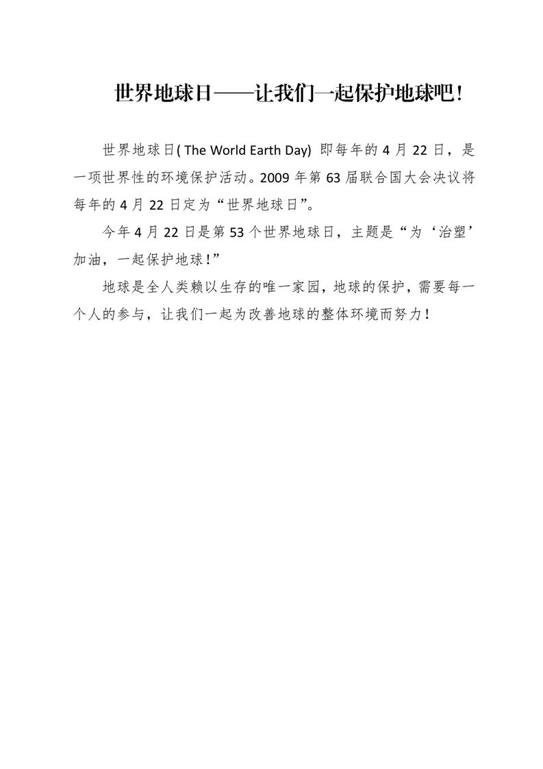 · 世界地球日——讓我們一起保護地球吧!