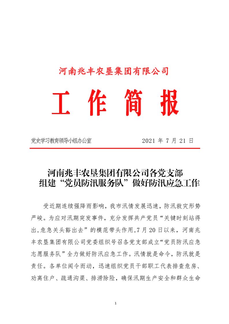 · 【我為職工辦實事】河南兆豐農(nóng)墾集團(tuán)有限公司各黨支部 組建“黨員防汛服務(wù)隊”做好防汛應(yīng)急工作